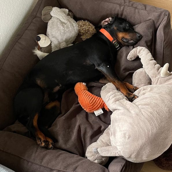 Extra flauschige Hundedecke mit zwei Lagen kuscheligem dunkelgrauem Plüsch sorgen für Wohlfühlmomente. Robuste, schmutzabweisende Polyester-Fasern machen sie langlebig und pflegeleicht – einfach maschinenwaschbar.