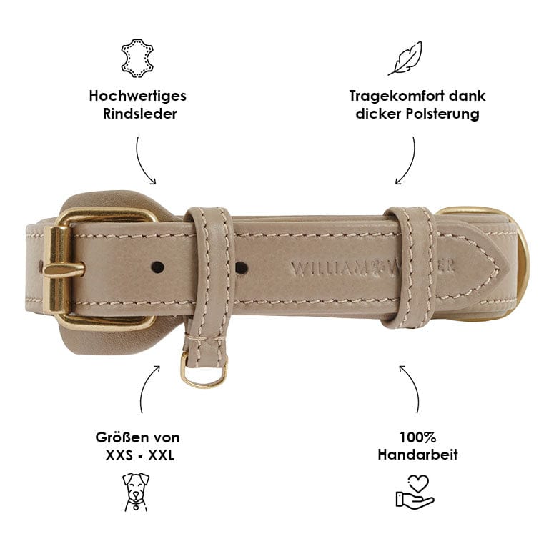 Das Hundehalsband Sand in einem hellen, beruhigenden Beigeton ist das ideale Hundehalsband für kleine wie große Hunde und alle, die in Sachen Funktionalität, Komfort und Design keine Kompromisse eingehen wollen.