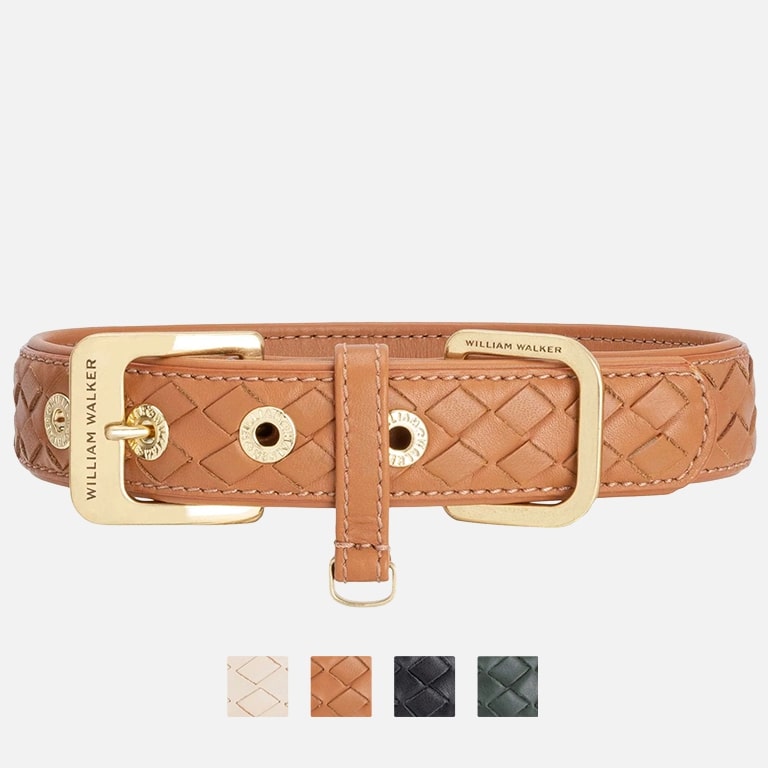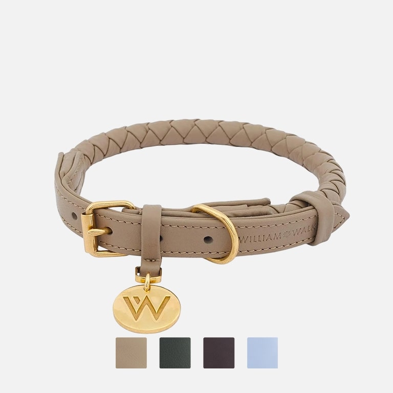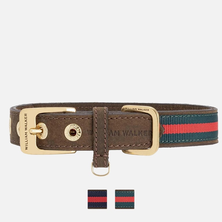 Un ejemplo es el collar de cuero para perros William Walker en verde bosque, que hace que cada paseo tenga una apariencia elegante.