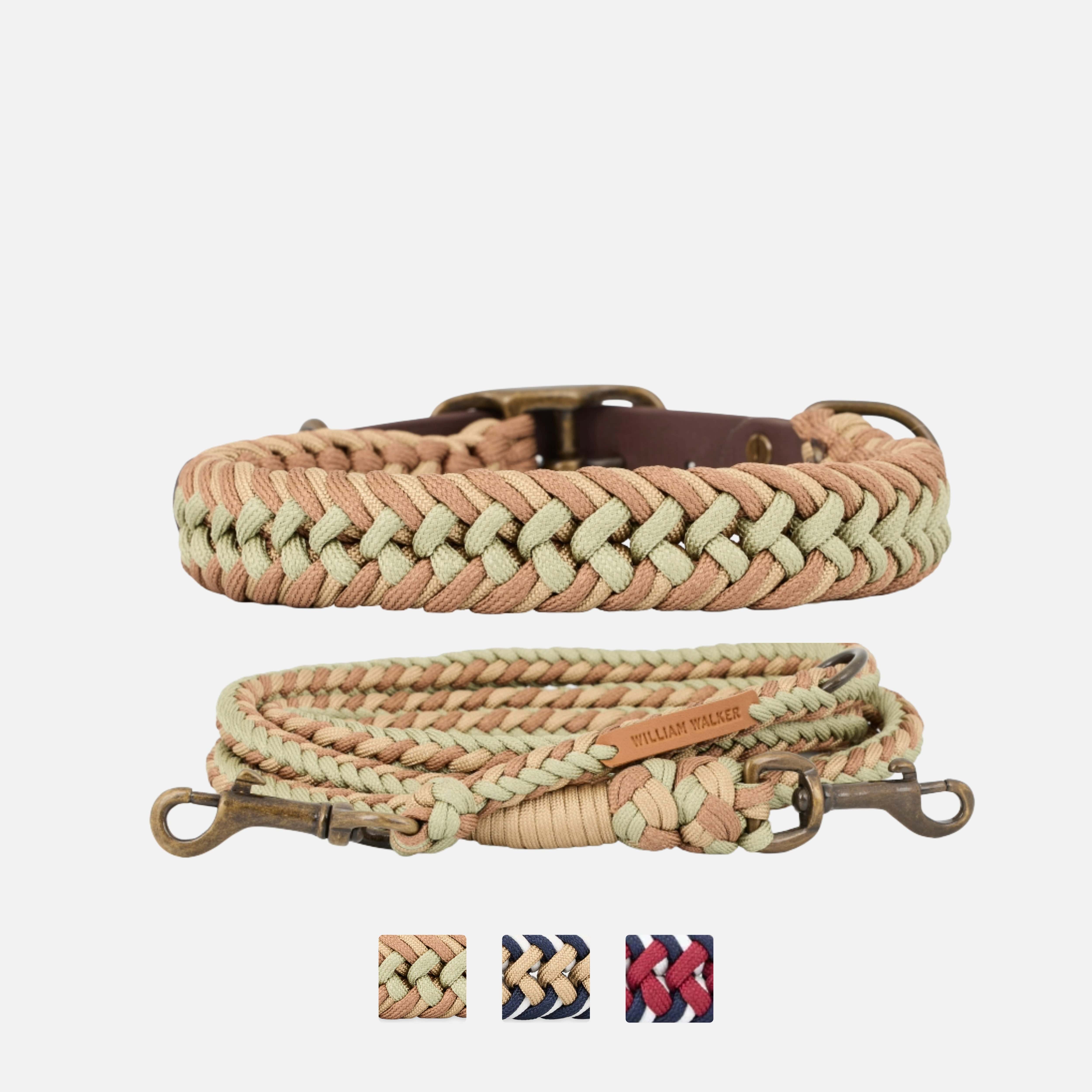 Nuestras colecciones están cuidadosamente compuestas para ofrecerte a ti y a tu perro un conjunto armonioso. Cada set incluye collares, correas, dispensadores de bolsas y portasnacks a juego, perfectamente coordinados en diseño y materiales. Así iréis siempre con estilo y bien equipados.