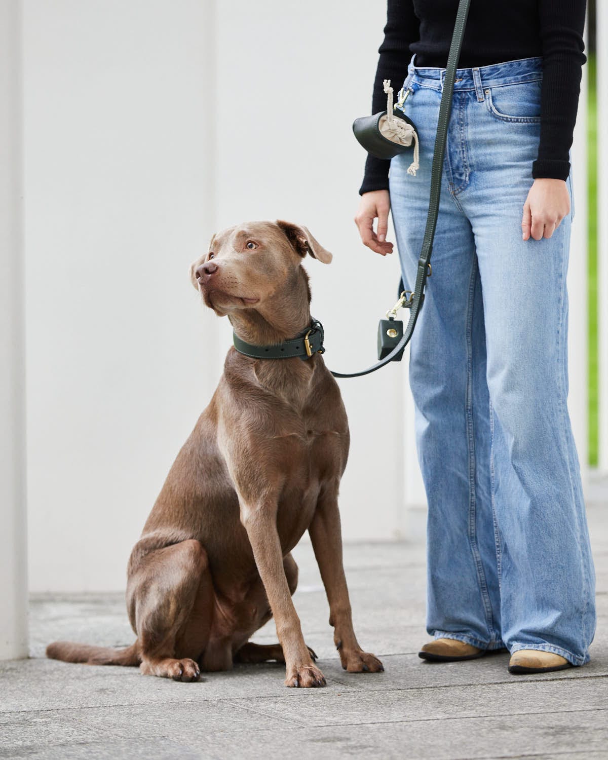 Collar de cuero para perros Musgo oscuro (verde bosque)